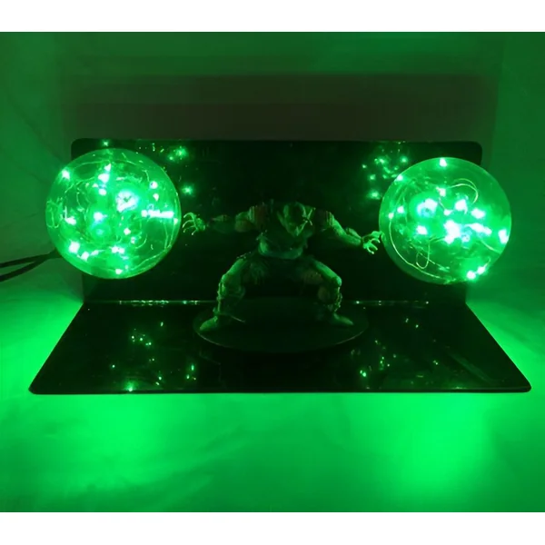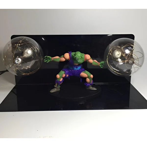 La conception de la lampe met en valeur la figurine de Piccolo, la plaçant au centre de l’attention. Les orbes lumineux, positionnés de part et d’autre, créent un équilibre visuel et renforcent l’impact de la scène. La lumière qu’elles diffusent n’est pas agressive, mais plutôt une douce lueur qui met en évidence les détails de la figurine et crée des ombres subtiles, ajoutant de la profondeur à la représentation. C’est une manière élégante d’intégrer un élément emblématique de Dragon Ball Z dans votre quotidien.