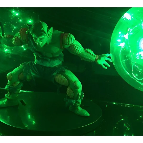 La lumière douce émanant des orbes ajoute une dimension émotionnelle à l’ensemble. Elle crée une ambiance à la fois mystérieuse et pleine d’espoir, évoquant la gravité de la situation tout en soulignant l’héroïsme de Piccolo. Cette lampe n’est pas seulement un objet pour les collectionneurs, mais une invitation à se remémorer les moments forts qui ont fait de Dragon Ball Z une saga intemporelle.