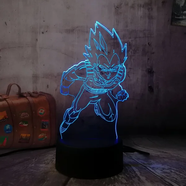La conception 3D de la lampe apporte une profondeur visuelle saisissante. L’illusion d’une figurine en trois dimensions, illuminée par un halo lumineux, crée un effet visuel captivant sous différents angles. C’est comme si Vegeta lui-même était présent, projetant sa propre aura. La base stable assure une présentation sécurisée, tandis que le design épuré s’intègre facilement dans divers environnements. Que vous soyez un collectionneur de longue date ou un nouveau venu dans l’univers de Dragon Ball, cette lampe est une manière élégante et moderne de célébrer l’un des personnages les plus emblématiques de la série.