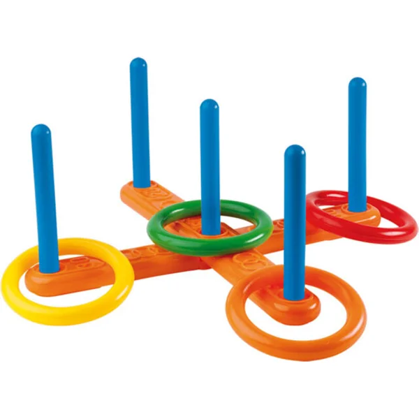 Jeu amusant de lancer des cerceaux sur une croix pour les petits et les grands.