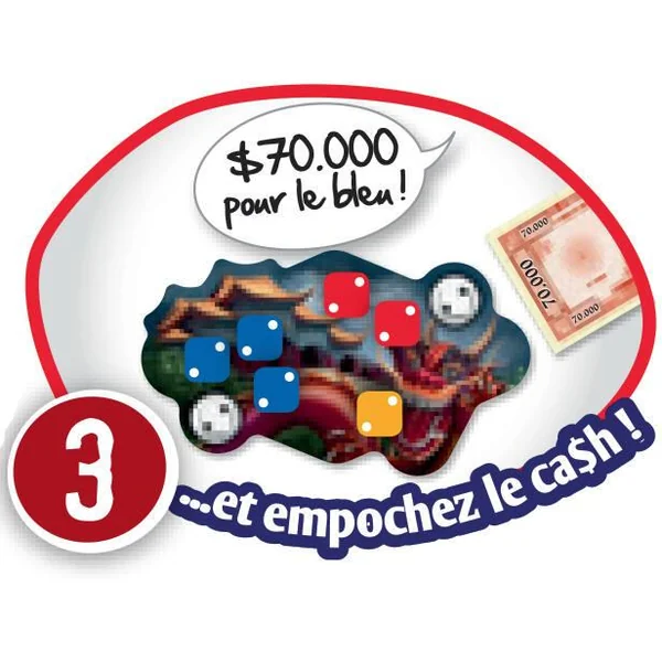 Chaque joueur place ses dés pour tenter de remporter les gains les plus élevés. La manipulation et le bluff sont essentiels pour réussir. Préparez vous à des tours de jeu intenses où les retournements de situation sont fréquents. C’est un jeu simple, mais terriblement addictif qui rassemble la famille et les amis autour de la table.