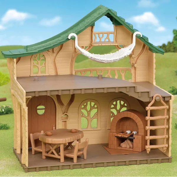 Le chalet du lac est composé de 2 pièces principales reliées par une échelle et d’un balcon. Il possède des meubles en bois et des accessoires : un poêle à bois devant lequel les Sylvanian Families cuisinent, une table à manger sur laquelle ils partagent les repas et un hamac pour se reposer. Le toit du chalet possède un toboggan secret que seuls les bébés connaissent. connectable avec La cabane dans les arbres. Une trappe, dissimulée dans le sol du chalet, forme un passage secret lorsque le chalet est fixé sur la terrasse de la cabane. 1 chalet, 1 hamac, 1 table, 2 chaises, 2 gobelet, 1 poêle à bois, une grille de cuisson, 2 ustensiles avec guimauve. Figurines non fournies.