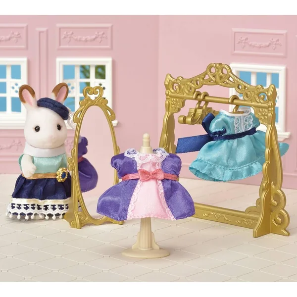 Allons découvrir les nouvelles tenues créées par la grande sœur lapin chocolat. Le dressing de mode, 3 robes, 3 ceintres, un mannequin et une glace sur pied. Gamme développée avec une grande exigence de qualité.