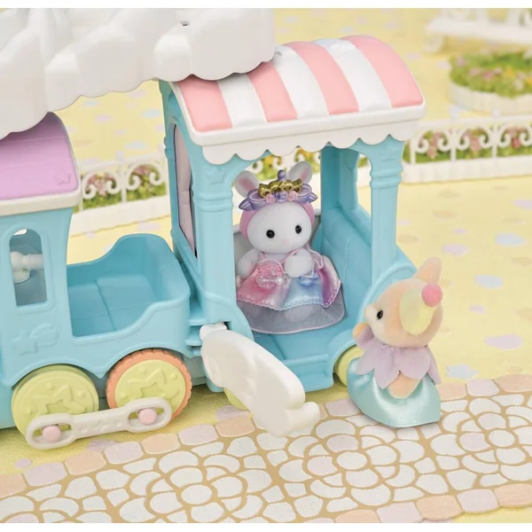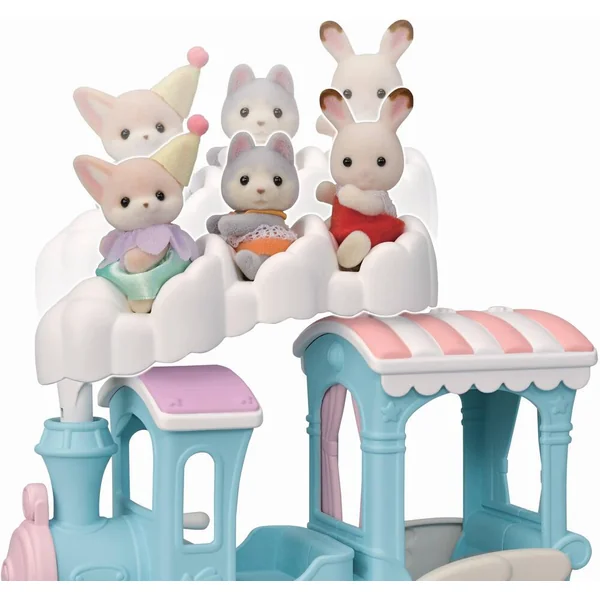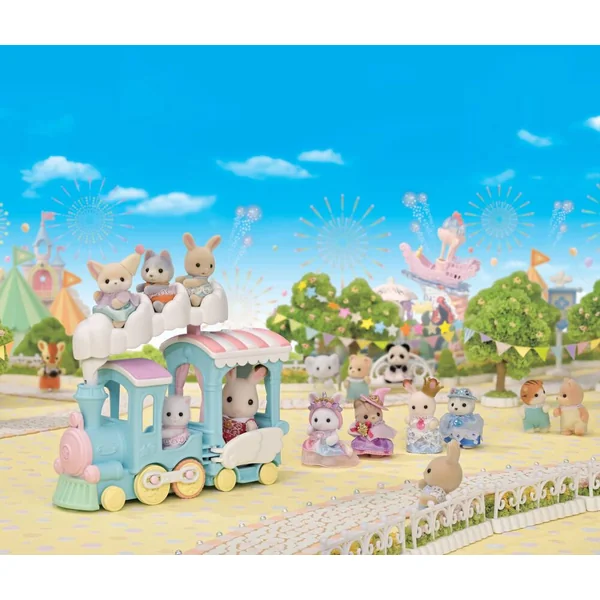 Ce set contient le bébé Fennec dans une tenue exclusive et un train à vapeur. Installe 3 personnages dans les sièges formés par la vapeur du train. En faisant rouler le train, les sièges montent et descendent. Le train peut transporter jusqu’à 5 personnages.