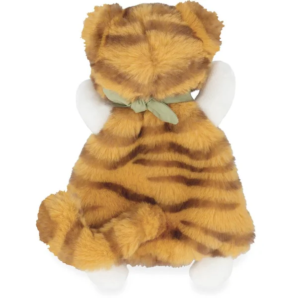 Papaye, le tigreau est le nouvel ami charismatique et protecteur de bébé qui sera tout le temps à ses côtés. Avec sa belle fourrure rayée aux teintes contrastées, il fera craquer tous les coeurs avec son extrême douceur. Les contrastes de sa fourrure permettront à bébé de développer sa vue. Son joli minois stimule l’affect et l’empathie de bébé. Sa parfaite petite taille de 18 cm le rend encore plus adapté pour la prise en main et les calins de bébé. Idéal pour être emporté partout. Ses pattes et sa queue serviront de moyens de préhension pour les petites mains. Son bandana vert, est un rappel de la nature avec sa broderie de douces feuilles. Ce mini doudou tigreau à une taille parfaite pour accueillir bébé avec douceur. Lavable en machine à 30°. Rembourrage en polyester recyclé. Dès la naissance.