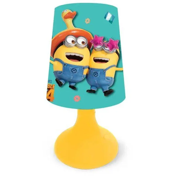Lampe de chevet Les MinionsDécorez la chambre de vos enfants avec ce design Moi moche et méchantLumière LED pour profiter d’un éclairage économe en énergie.L’abat-jour apporte une lumière douce et vous évite la lumière directe.La lampe s’allume via une ampoule E27 (non incluse). Longueur du cordon d’alimentation 71cm. Fonctionnement sur secteur. Dimensions : 18.5 x 18.5 x 29 cm.