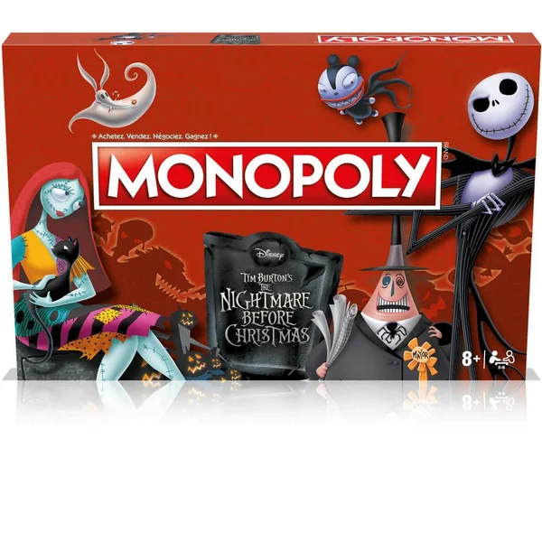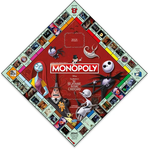 Que vois-je ? Le jeu de société le plus célèbre au monde s’associe à l’effrayant classique de Tim BURTON pour vous offrir une édition collector du MONOPOLY L’Étrange Noël de monsieur Jack. Lancez-vous dans une quête effrénée pour devenir le Roi d’Halloween-ville. Vendez, louez et échangez des lieux emblématiques du film comme la tombe de Zéro, Spiral Hill, le laboratoire du Dr Finkelstein et la tour de Jack.