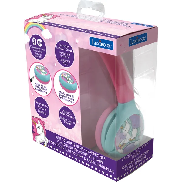 Nous vous présentons des écouteurs pratiques 2 en 1, équipés de la technologie sans fil ainsi que d’une option de connexion par câble pour une écoute ininterrompue de la musique, le visionnage de vidéos ou le jeu vidéo. Grâce à une portée allant jusqu’à 10 mètres, la technologie Bluetooth® 5.0 permet une connexion sans fil à tous les appareils compatibles, tels que les smartphones, les tablettes, les lecteurs audio et vidéo. Vous pouvez également les passer facilement en mode câblé à l’aide d’un câble détachable de 110 cm avec connecteur jack 3,5 mm (inclus dans l’emballage). Ces écouteurs sont très pratiques, avec des commandes intégrées telles que lecture/pause, boutons de volume et possibilité de changer de piste sur les écouteurs, de plus avec un microphone intégré pour recevoir des appels. Ils sont totalement sûrs pour les petites oreilles avec un niveau sonore maximal de 85 dB. Non seulement les écouteurs sont équipés d’un arceau réglable qui s’adapte parfaitement à chaque tête, et de coussinets doux et confortables, mais ils sont également pliables et fabriqués à partir de matériaux légers.