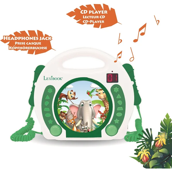 Lexibook Lecteur CD portable avec 2 microphones Animaux