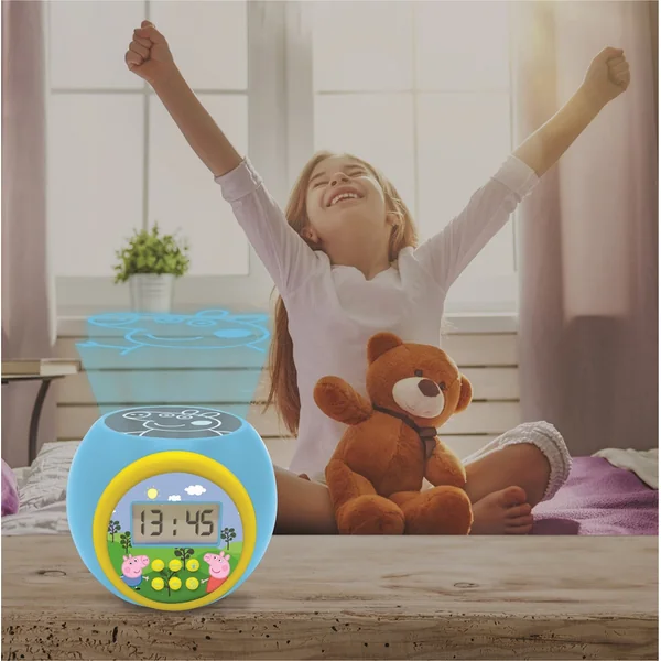 Le réveil avec projecteur crée une atmosphère agréable dans la chambre des enfants avant que vos plus petits ne s’endorment. Ce réveil adorable en forme ronde projette une image thématique au plafond et fonctionne également comme une veilleuse qui change automatiquement entre trois couleurs – orange, bleu et rouge.