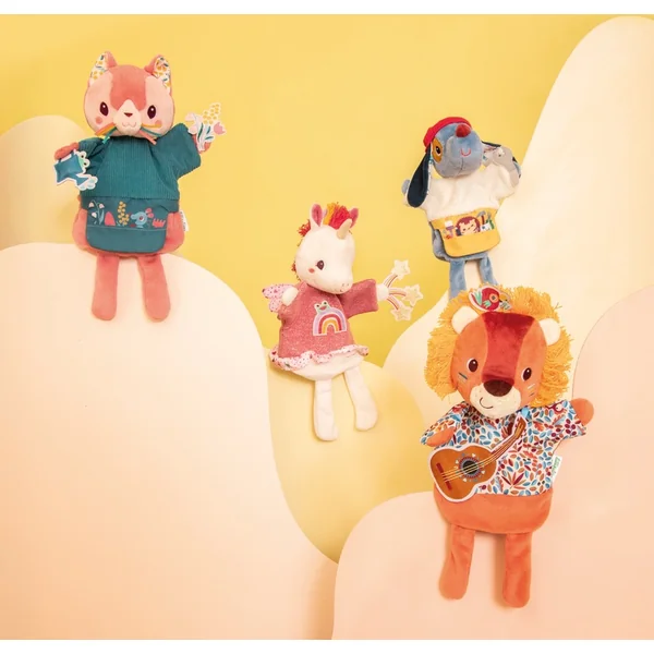 Peluche marionnette dans un adorable motif de licorne Lena. Ce jouet très doux est agréable au toucher et incite à être câliné. La marionnette Lena a de nombreux jolis détails et est idéale pour raconter différentes histoires. Tout dépend de vous et de votre imagination, dans quelles aventures la licorne s’engagera avec ses amis. Peut être lavé en machine à 30 °C sur cycle délicat.