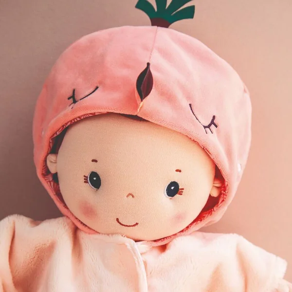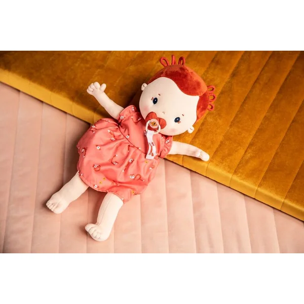 Le jouet peut être lavé en machine à 30 °C. Jouer avec la poupée développe l’empathie et le jeu de rôle. Matériau: 100% polyester + aimant, rembourrage 100% polyester recyclé (certification GRS).