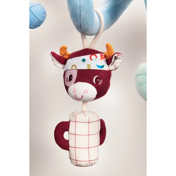Le jouet est idéal pour le développement de la vue, des sens et est en plus une véritable source de divertissement – tissus surprenants, textures, sons, petits jouets suspendus.