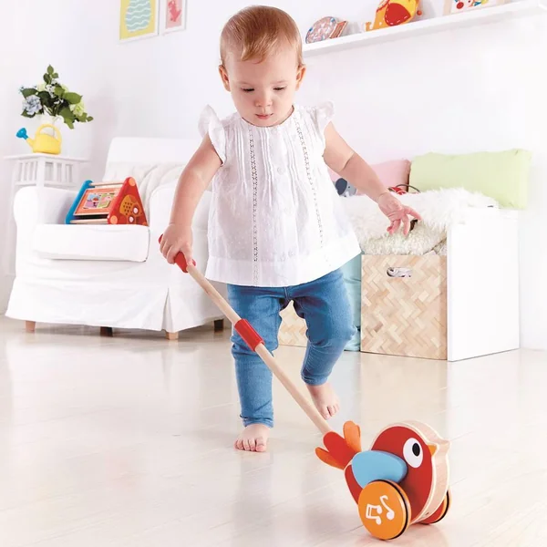Lilly l’oiseau gazouille gaiement et grandit tout en aidant les petits à apprendre à marcher et à trouver leur équilibre.