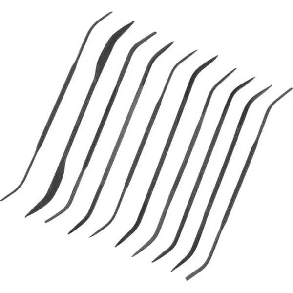 Ensemble de 10 pièces de lime profilée courbée. Un outil indispensable pour travailler avec des métaux, du bois ou des plastiques. Les sections de base des limes sont rectangulaires, carrées, rondes, semi-sphériques et triangulaires. Forme spéciale pour travailler dans des endroits difficiles d’accès.