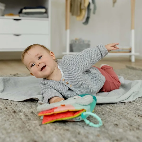 Des motifs colorés et des effets amusants sur huit pages invitent à un apprentissage et à une découverte ludiques. Un koala, le soleil, une tortue, un crocodile, un nuage et un poisson s’occupent du divertissement de l’enfant.