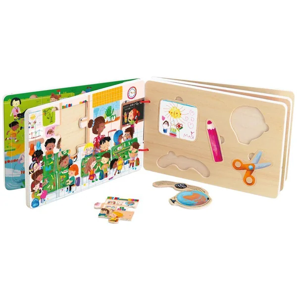 Avec ses 4 univers familiers (le sport, l’école, la maison et les loisirs), l’enfant s’amuse à reconnaître les scènes de son quotidien et enrichit son vocabulaire tout en s’exerçant à la motricité fine.