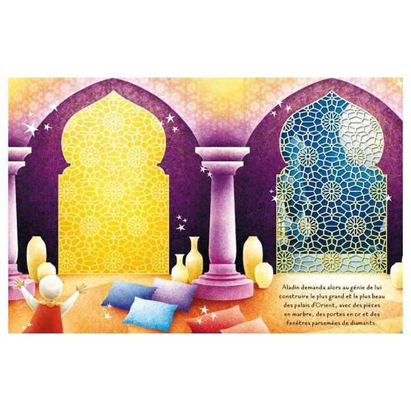 En plein coeur du désert de l’Arabie, le jeune Aladin pénètre dans une grotte mystérieuse à la recherche d’une lampe aux pouvoirs magiques. Commence alors une aventure extraordinaire avec des magiciens, des génies et une très belle princesse. Découvre l’un des plus beaux contes orientaux en feuilletant les pages finement découpées au laser de ce livre et laisse-toi envoûter par sa magie… Un grand classique des contes pour enfants revisité avec un graphisme novateur. La finesse des découpes au laser rendra la lecture encore plus passionnante. Avec de magnifiques illustrations qui capturent l’attention du lecteur.