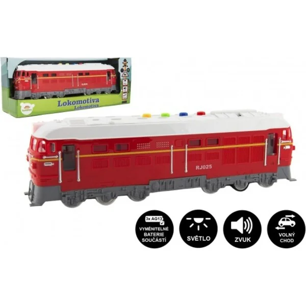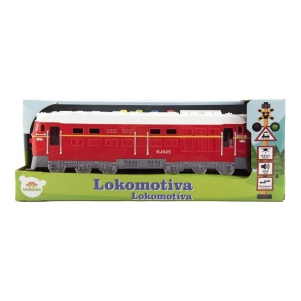 Une belle locomotive de couleur rouge fabriquée en plastique mesure 35 cm. Les piles 3x AAA sont incluses dans le produit. Le train émet des sons classiques de locomotive.