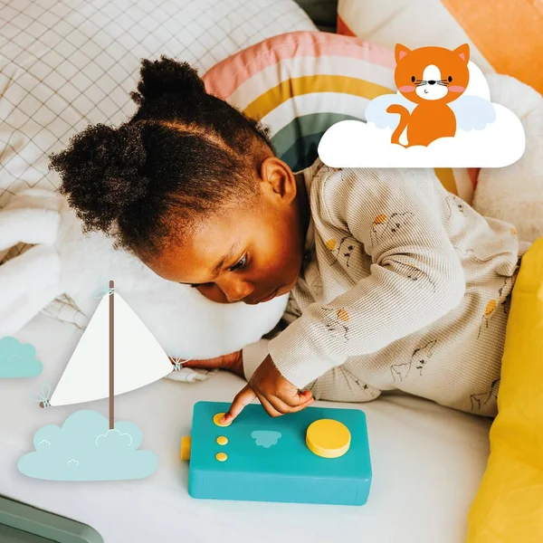 La nuit noire et profonde étend son voile sur le monde.Les paupières sont lourdes, les yeux des enfants se ferment. Chuuut, plus un bruit… Là haut dans le ciel, le pays des songes se réveille. La fabrique des rêves prend vie, les lutins s’activent. Chaque soir, ils redoublent d’inventivité pour envoyer de beaux rêves aux enfants du monde entier. Quant à la gardienne Selena, elle veille au grain. Y a-t-il assez de poudre de fantaisie ? Les cauchemars sont-ils bien gardés ? Grâce aux habitants du pays des songes, chaque rêve est unique et merveilleux. 6 histoires qui invitent au sommeil et 6 ambiances sonores de nature, empruntées à l’ASMR, pour encourager l’enfant à se relaxer en imaginant son propre rêve. Endormissement garanti ! Durée : 1h15 – Livre audio en français Comment ça marche ? Je reçois mon coffret. Je repère mon code d’activation unique sur la carte, je télécharge mon livre audio depuis mon compte Lunii et l’ajoute sur Ma Fabrique à Histoires. Lunii conseil : Activez le mode nuit sur Ma Fabrique à Histoires afin que les histoires et/ou les ambiances sonores s’enchaînent sans relance et permettent à votre enfant de s’endormir plus facilement. Un coloriage inclus au dos de la carte.