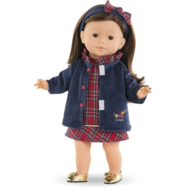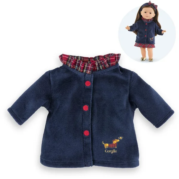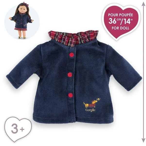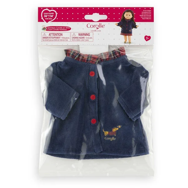 Le manteau Corolle en Fêtes pour poupée ma Corolle de 36 cm est idéal pour parfaire une tenue chic tout en se protégeant du froid ! Il est confectionné dans une matière douce. Son col à volants en tissu écossais, ses petits boutons rouge brodés sur le devant ainsi que sa jolie sérigraphie pailletée d’un petit chien « Teckel » viennent apporter une touche d’élégance à ce manteau. ma Corolle : Ma poupée, Mes Histoires ! Dès 3 ans.