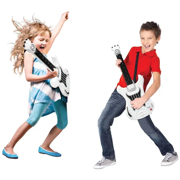 3 modes de jeu. Pavé tactile : technologie Touch pour jouer des accords de guitare. Chanson de démonstration. Les boutons de frettes activent différents rythmes, notes et chansons. Fantastique barre de vibrato. Les cordes lumineuses activent des effets sonores, des effets d’accords et des chansons. Méga haut-parleur. Prise d’entrée (Line-in) : la guitare peut être connectée à n’importe quel iPod, MP3, téléphone portable et équipement audio (non fournis). Contrôle du volume. Bouton de démonstration. Bouton on/off. Guitare livrée avec sangle amovible. Notice incluse. 3 piles LR6 fournies.