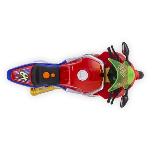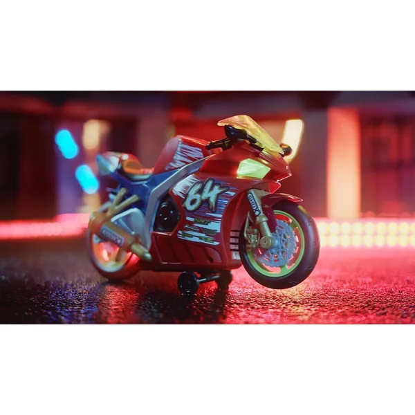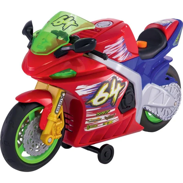 Cette petite moto de rêve mesure 25 cm de long pour une hauteur de 10 cm. Elle est dotée de 2 roues. C’est un modèle de moto miniature qui produit différents effets de lumières et émet de la musique. Elle porte le chiffre 64 et la couleur principale est le rouge. Les phares sont fonctionnels. La moto peut faire du wheeling et la roue arrière s’allume alors en rouge. Ce jouet pour enfants de 3 ans et plus fonctionne avec 3 piles LR6 fournies. Il est parfait pour les enfants qui aiment les véhicules miniatures réalistes comme le coffret hélicoptère pompiers.