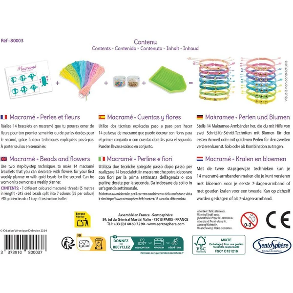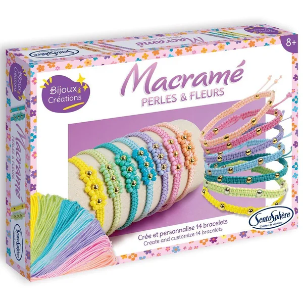 Ce coffret permet de créer 14 bracelets, en 7 couleurs pastel différentes. Grâce au pas-à pas fourni, les enfants apprendrons la technique du macramé. Ils pourront ainsi changer de bracelets tous les jours selon leur tenue, en porter 7 en même temps ou encore en offrir à leurs amis. Les petites perles dorées permettront d’orner le tressage ou de réaliser d’adorables petites fleurs, ce qui rend unique ce kit de mini macramé.