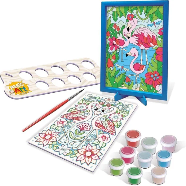 Amuse-toi à peindre avec les numéros ! Ce coffret est spécialement conçu pour les enfants à partir de 9 ans. Chaque zone du dessin est associée à un numéro qui indique la couleur à utiliser — c’est très facile ! Une activité créative qui aide à développer la concentration, la coordination et la reconnaissance des couleurs, tout en s’amusant. Contient tout le nécessaire pour commencer : une planche avec dessin numéroté, des peintures et un pinceau.