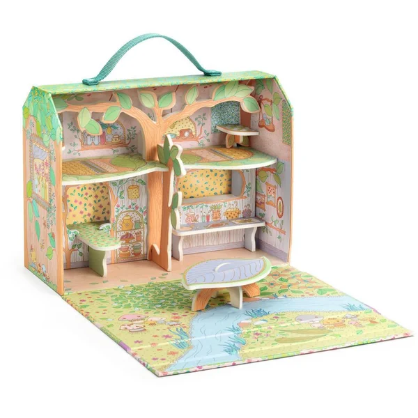 Cachée dans la forêt, la maison de bois de Sylvia et son adorable renard Fox est un véritable havre de paix en pleine nature. À l’ouverture de la valisette, on découvre une tiny house confortable et construite autour d’un arbre comprenant deux chambres, une cuisine, un salon, une table, et à l’extérieur un paysage bucolique relaxant avec la rivière qui passe tout près. De quoi se connecter avec la nature !