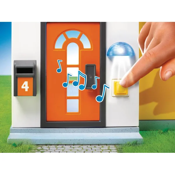 La maison moderne Playmobil 9266 est dotée d’une sonnette et d’un éclairage extérieur. Toutefois, il faut noter que les effets sonores et lumineux nécessitent 2 piles micro 1,5 V (non fournies) pour fonctionner.