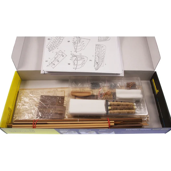 Les kits de modèles de bateaux non navigants de la marque Mamoli sont très populaires, grâce à un large choix de modèles avec de nombreux éléments à un prix attractif. Les pièces du kit sont découpées à l’aide d’une technologie laser moderne, garantissant que les pièces s’ajustent parfaitement. Tous les accessoires du kit sont fabriqués en bois et en métal et sont en grande partie pré-traités.