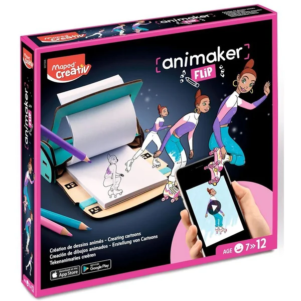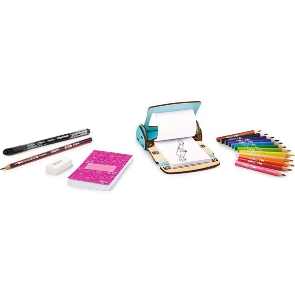 Transforme tes dessins en dessins animés grâce aux carnets flipbook et à l’appication Animaker ! Innovation : Réalisez facilement des dessins qui prennent vie grâce aux carnets flipbook et à l’application gratuite, transformant vos créations en véritables dessins animés. Résultat garanti : Laissez les enfants colorier, compléter ou inventer leurs propres histoires pour obtenir un résultat Wahou à partager ! Éducatif : Les enfants acquièrent les bases de l’animation. Set complet : Disposez de tout le nécessaire pour créer des animations comme un professionnel. Réutilisable : L’outil pour flipbook peut être utilisé avec n’importe quelle création. Inclus : flipbook en bois + élastique, 2 carnets flipbooks (= 4 dessins animés), 12 crayons de couleur Strong Mini Maped, 1 Graph’Peps Maped noir, 1 crayon graphite Black’Peps Navy Maped, 1 gomme Précision Maped, 1 notice, 1 QR code vidéo.