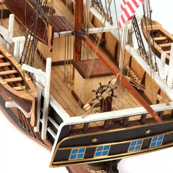 La maquette de l’Essex a été conçue avec une attention méticuleuse aux détails, offrant aux passionnés de modélisme naval une reproduction authentique du baleinier, depuis la construction de la coque jusqu’aux voiles et gréements.