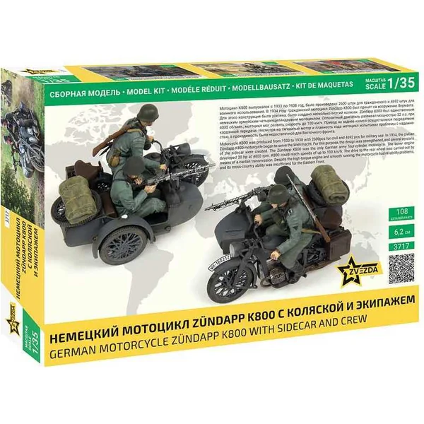 Maquette militaire 3717 – Moto Zuendapp K800 avec side-car (1:35)