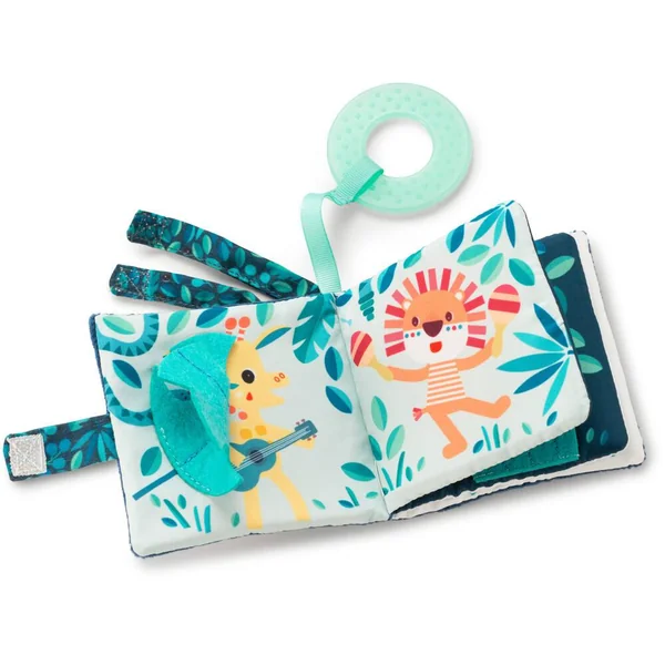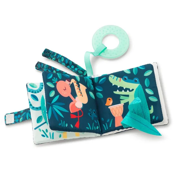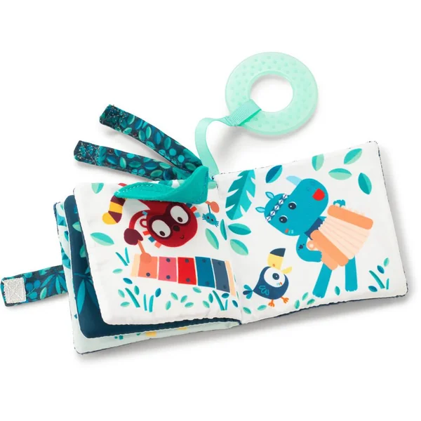 Marius le rhinocéros vous emmène dans la jungle pour faire connaissance avec ses petits amis qui, pour l’occasion, jouent chacun d’un instrument de musique. Un imagier interactif tout doux, rempli de surprises pour les yeux et pour les oreilles, et soulageant les petites dents qui pointent dans la bouche de bébé.