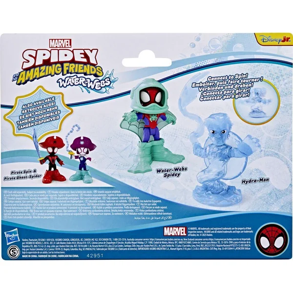 Tout est prêt pour rejoindre l’équipe Spidey dans ses nouvelles aventures aquatiques avec ce pack de figurines de collection Marvel Water-Webs Spidey et Hydro-Man ! Ces figurines Marvel de 7,5 cm ont une déco et un design inspirés du dessin animé et incluent des accessoires amovibles qu’on peut fixer sur les figurines. Le bouclier d’Hydro-Man se fixe également sur la base de la figurine pour la faire tourner ! Ce pack de 2 figurines Marvel encourage les enfants (à partir de 3 ans) à jouer en grand et à imaginer des aventures héroïques ! Il existe d’autres figurines Water-Webs Spidey et ses Amis Extraordinaires, dont Pirate Miles Spin Morales et Pirate Ghost-Spider, pour créer une collection de super-héros lanceurs de toiles ou pour faire un super cadeau Marvel aux tout-petits ! (Vendus séparément, dans la limite des stocks.) Copyright MARVEL. Toutes les marques de commerce et les marques de commerce déposées appartiennent à leurs propriétaires respectifs. HASBRO et tous les logos et marques associés sont des marques de commerce de Hasbro, Inc.