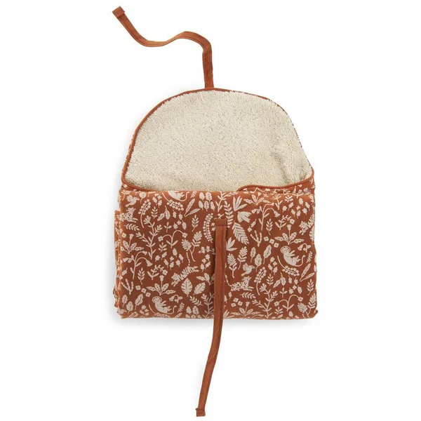 Matelas à langer nomade imprimé feuillage. Pratique pour changer bébé hors de la maison. Intérieur en éponge doux et absorbant. Labelisé OEKO-TEX® STANDARD 100 – CQ1337/1 IFTH.