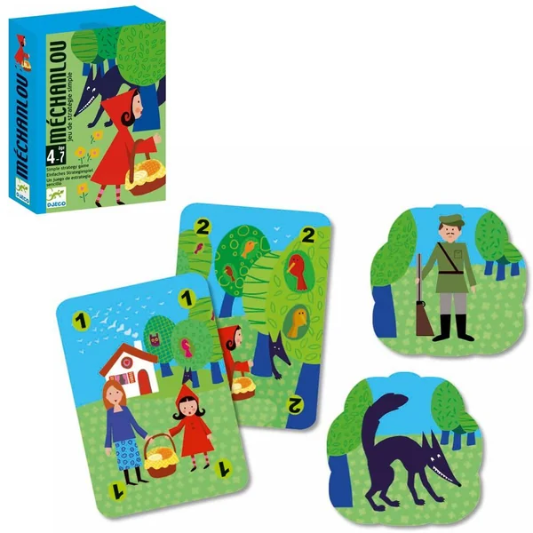 Les enfants auront plaisir à jouer avec les personnages du célèbre conte du petit chaperon rouge. Le gagnant est le joueur qui réunit les 6 cartes du conte. Mais attention au loup ! Boîte cartonnée de 50 cartes. De 2 à 4 joueurs.
