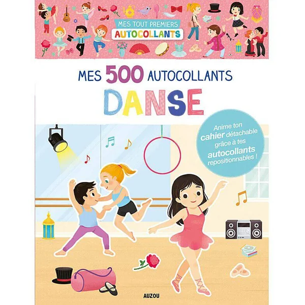 Un cahier de plus de 500 autocollants sur le thème de la danse. Il propose également un cahier détachable d’histoires à animer.
