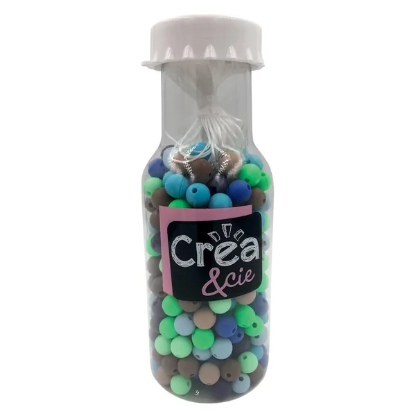 Perles aux couleurs froides livrées avec 10 mètres de fil dans une bouteille. Livré dans une bouteille. En plastique.