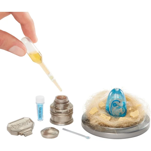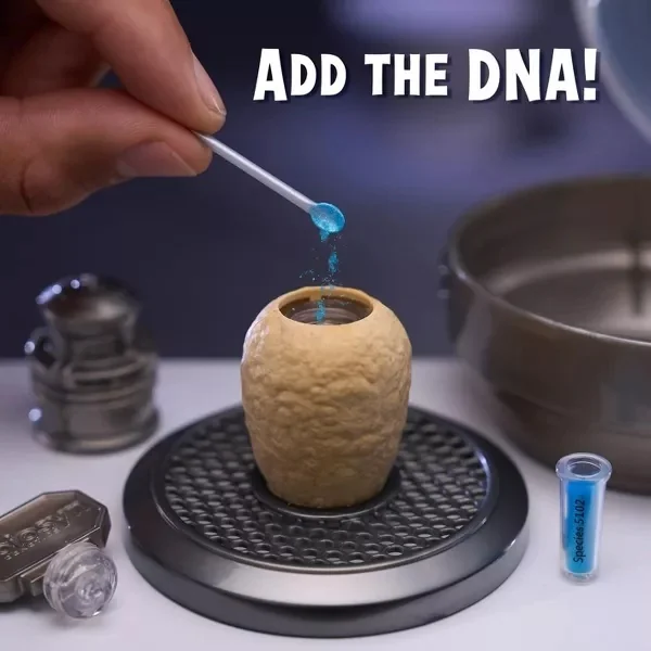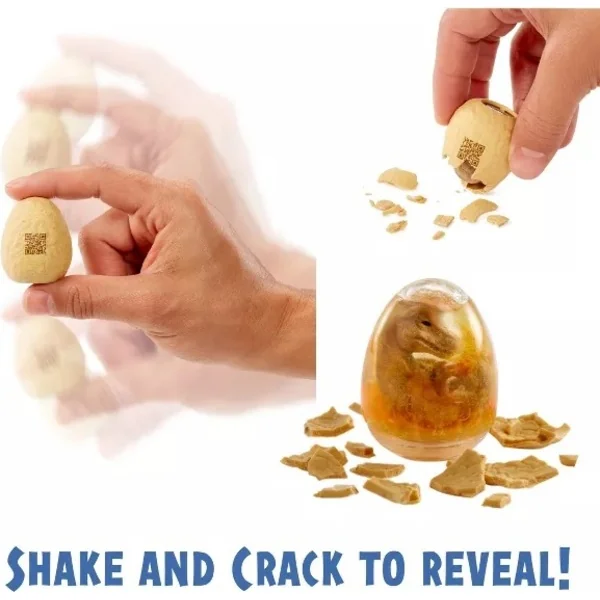Comparez le contenu de l’emballage avec le guide de collection et découvrez quel mini dinosaure vous avez. Suivez les instructions pour injecter la poudre et le liquide ADN dans l’œuf ou le cylindre, donnant vie à votre dinosaure ! Après avoir injecté l’« ADN », secouez l’œuf ou le cylindre hybride et attendez que les matériaux se séparent, révélant ainsi votre dinosaure !