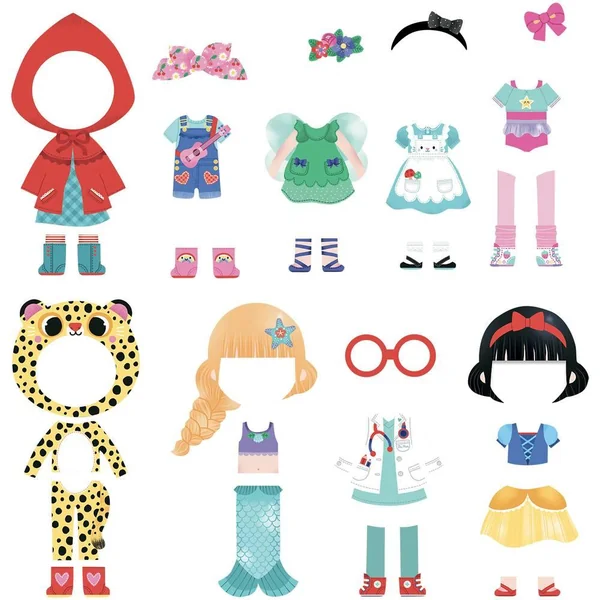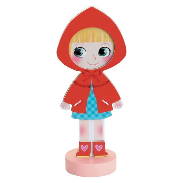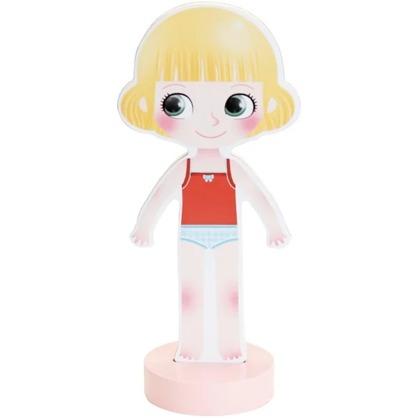 Habille ta poupée en bois grâce aux 36 vêtements et accessoires magnétiques inclus.