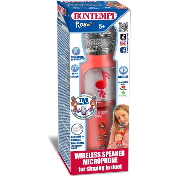 Découvrez le Micro sans fil avec haut-parleur pour chanter en duo, un instrument de musique idéal pour les enfants à partir de 5 ans. Ce produit de la marque Bontempi transforme chaque moment en une aventure musicale unique.