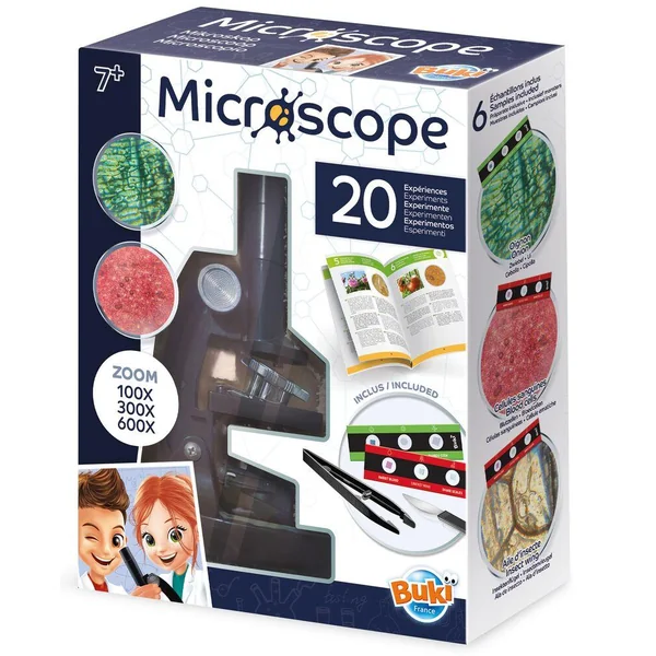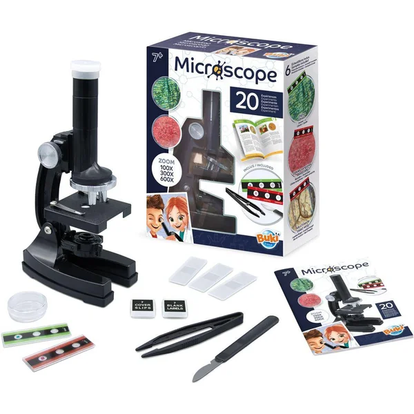 Observe le monde du minuscule avec un microscope grossissement 100-300-600x, idéal pour débuter. 20 expériences pour comprendre les matières qui nous entourent et du matériel pour préparer ses échantillons.
