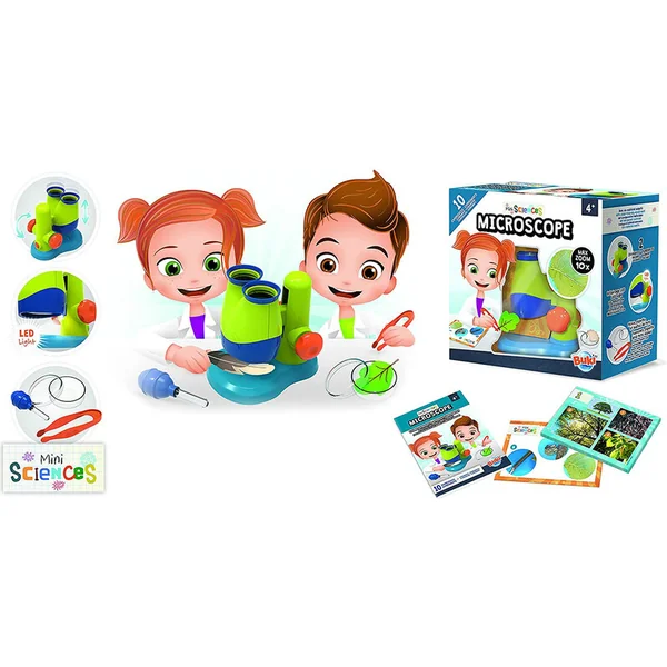 Le microscope de la série MiniScience est destiné aux plus petits chercheurs âgés de 4 à 7 ans. Il possède un corps ergonomique en plastique de qualité, des oculaires souples et une large optique pour une meilleure luminosité. L’agrandissement du microscope peut être réglé en continu jusqu’à 10x.