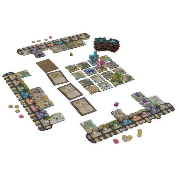 Il existe 8 tuiles différentes réprésentant les divers éléments de la cité médiévale : champ, ferme, village, rempart, marché, caserne, église, palais. Chacune est associée à un scoring, dépendant souvent d’autres tuiles et certaines déclenchent des effets interractifs (attaquer les autres joueurs, réserver des tuiles) ou permettant des combos (augmenter ses revenus).