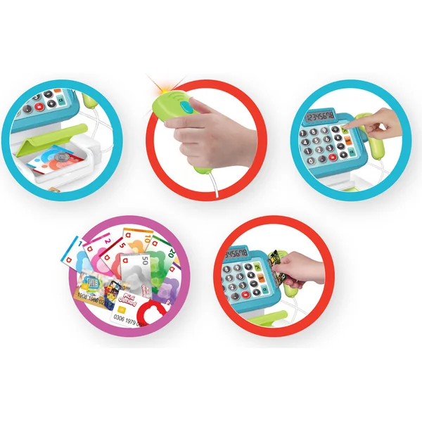 La caisse enregistreuse aide les enfants avec le comptage et la motricité fine. Elle apporte beaucoup de plaisir tout en soutenant le développement de l’imagination des enfants. Avec notre caisse enregistreuse numérique, vos enfants s’amuseront beaucoup. Ils pourront ouvrir leur propre magasin et vendre des articles à la caisse.