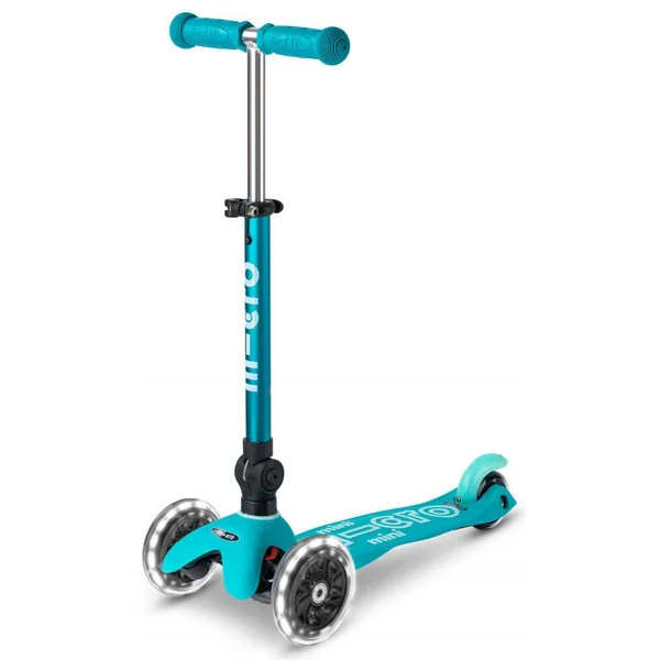 La célèbre trottinette Mini Micro Deluxe Aqua en version pliable et lumineuse ! La trottinette 3 roues Micro la plus emblématique et célèbre du marché en version pliable.