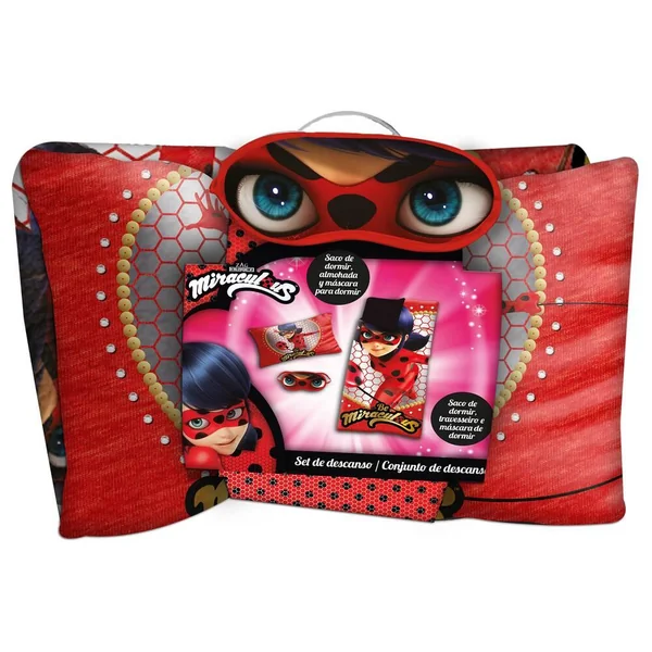 Set pyjama party avec un sac de couchage, un coussin et un masque. 1 face imprimée. Couleur unie à l’arrière pour le sac de couchage et le coussin. En polyester. Lavage en machine à 30°. Dimensions : sac de couchage 68 x 138 cm, coussin 28 x 43 cm et masque 18 x 9 cm. Ce produit n’est pas un jouet.